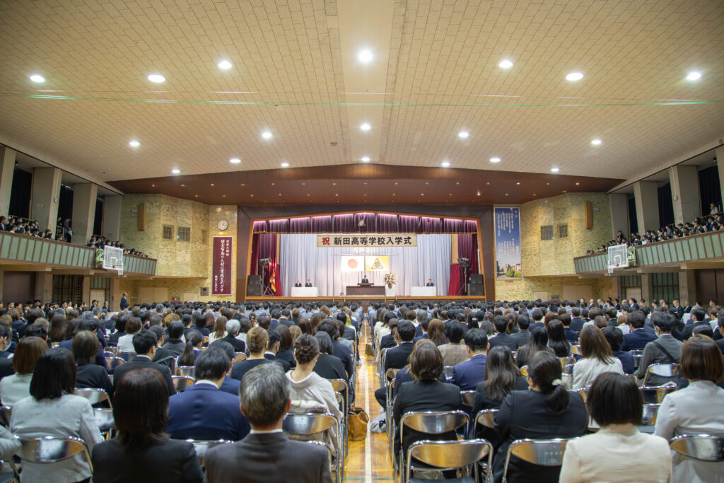 今日の新田高校では、新しい制服に身を包んだ新入生が集まり、入学式が行われています。