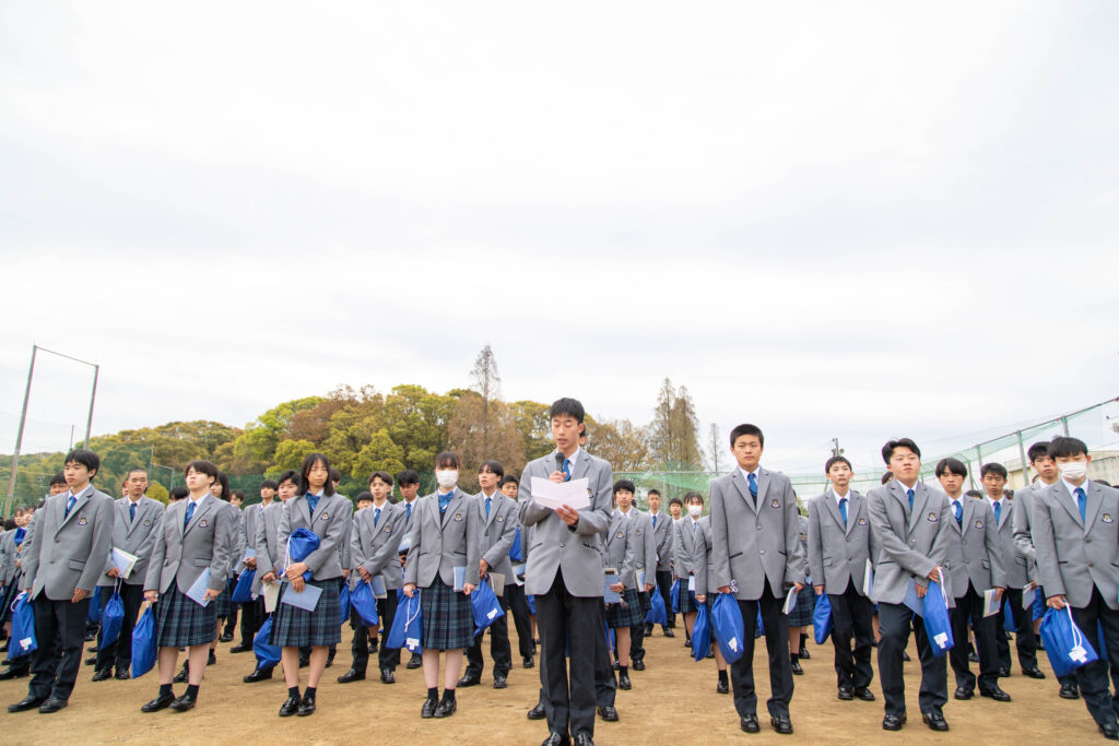 体育館には入りきらない数の生徒たちが、先輩後輩に分かれてグラウンドに整列しました。